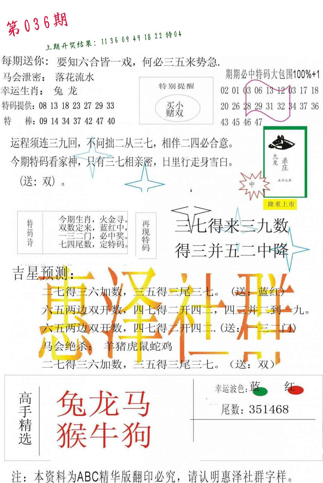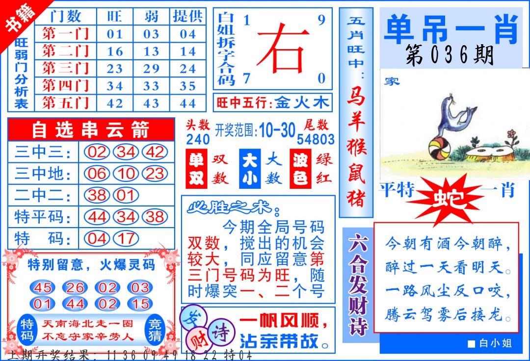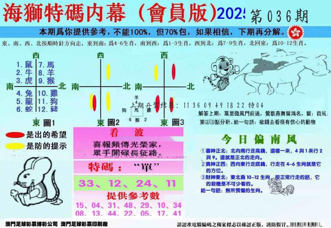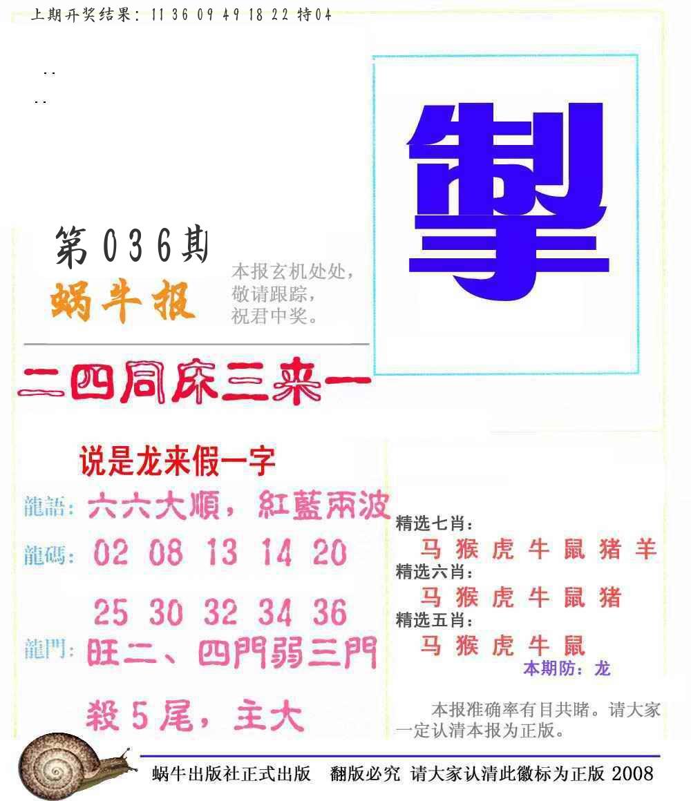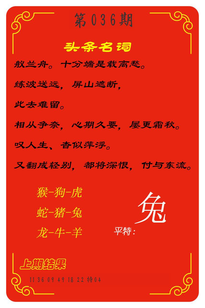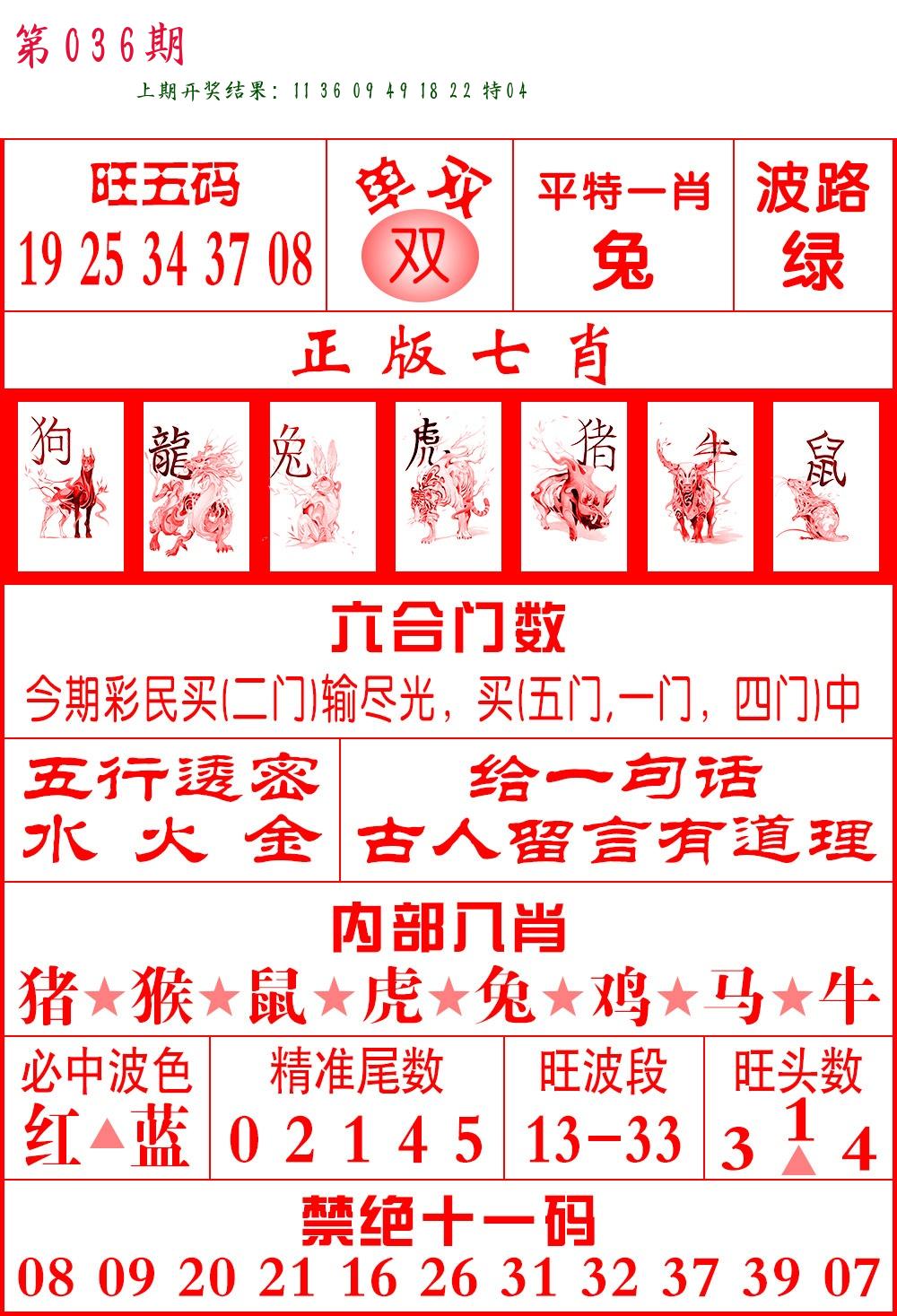 036期必中九肖 (??????)