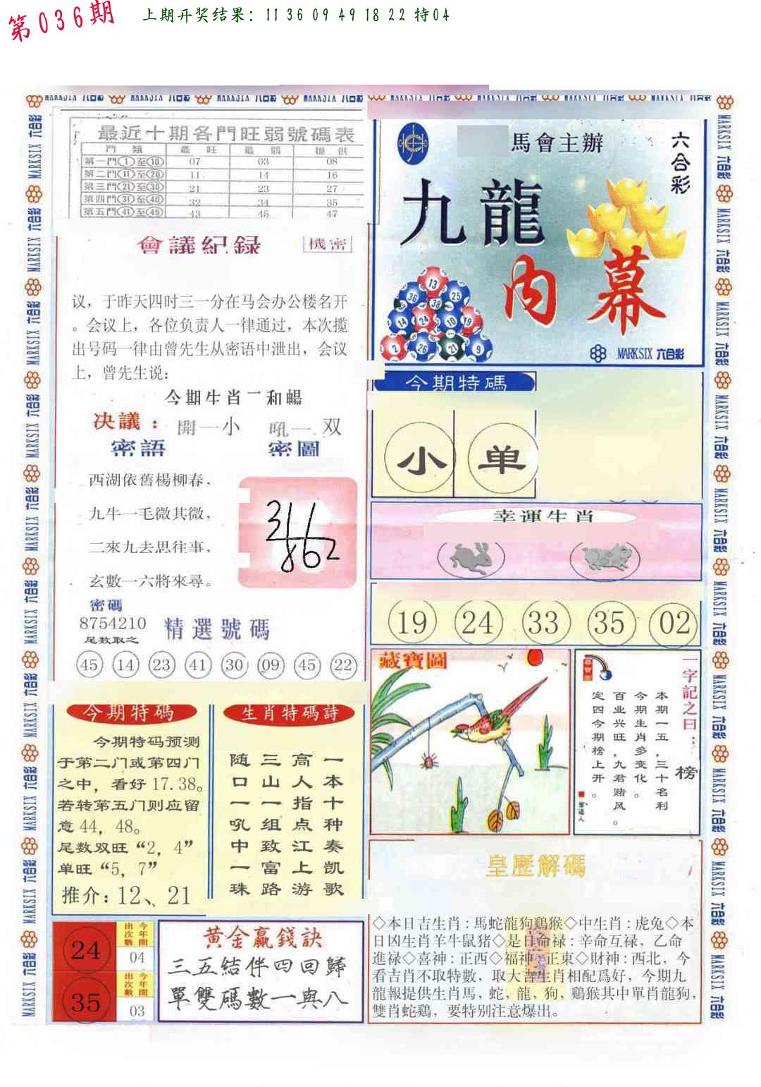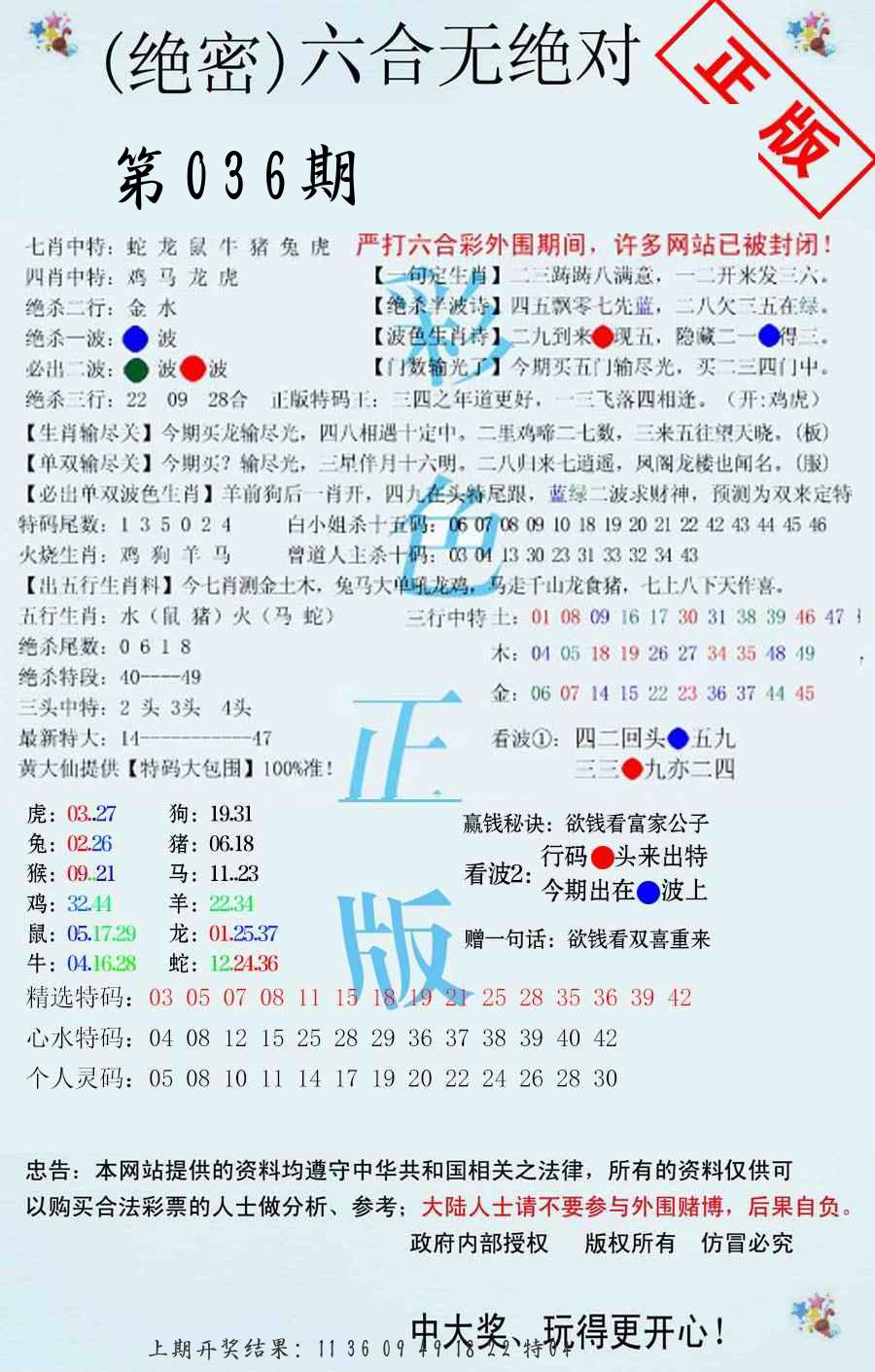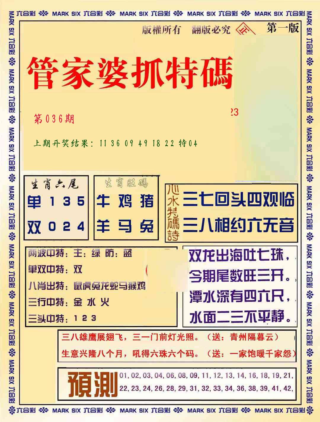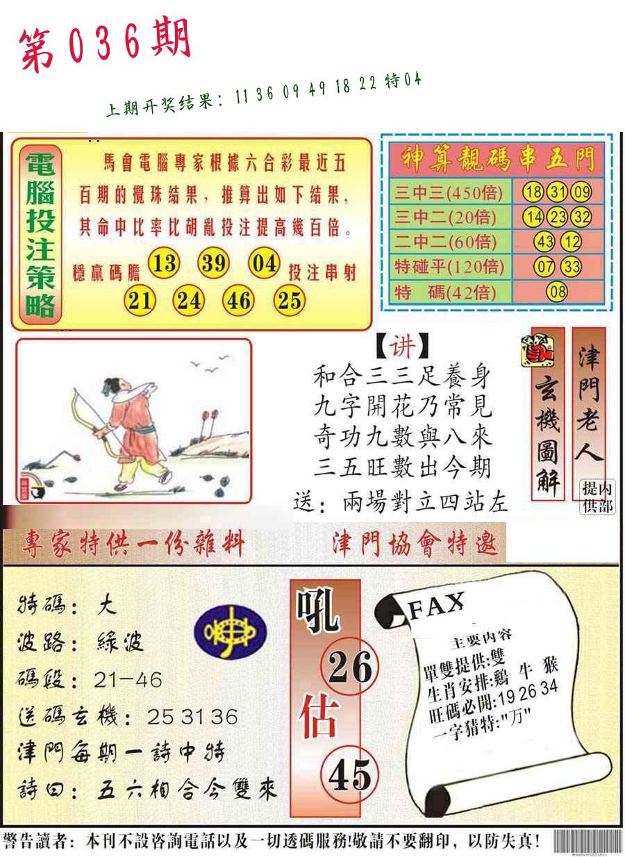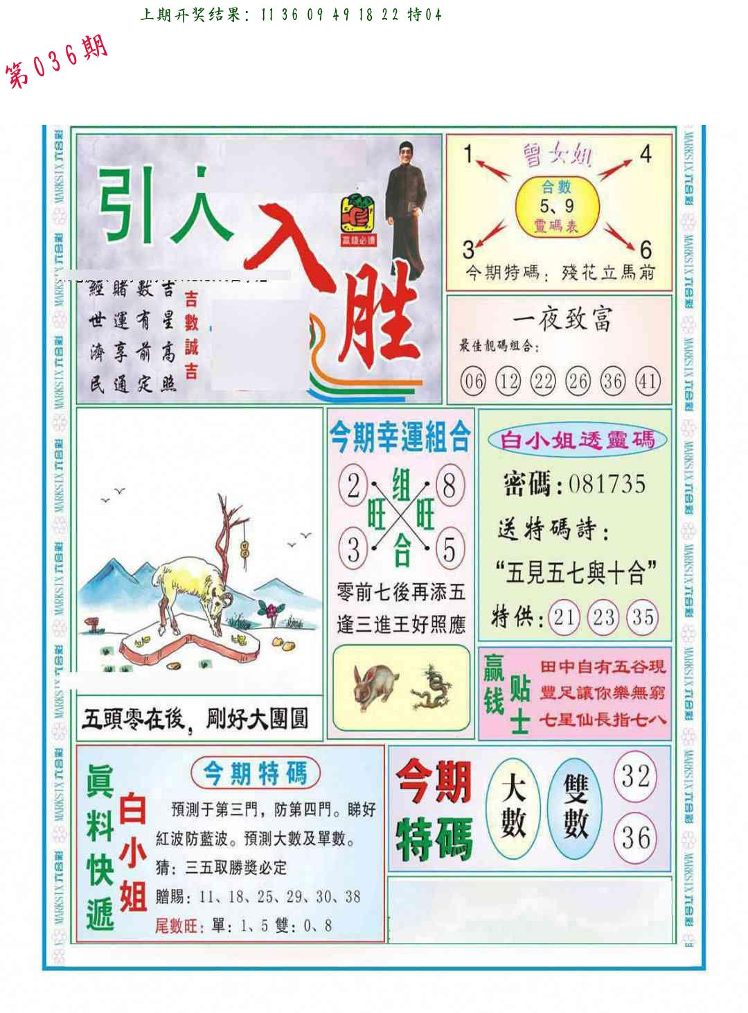 036期必中九肖 (??????)