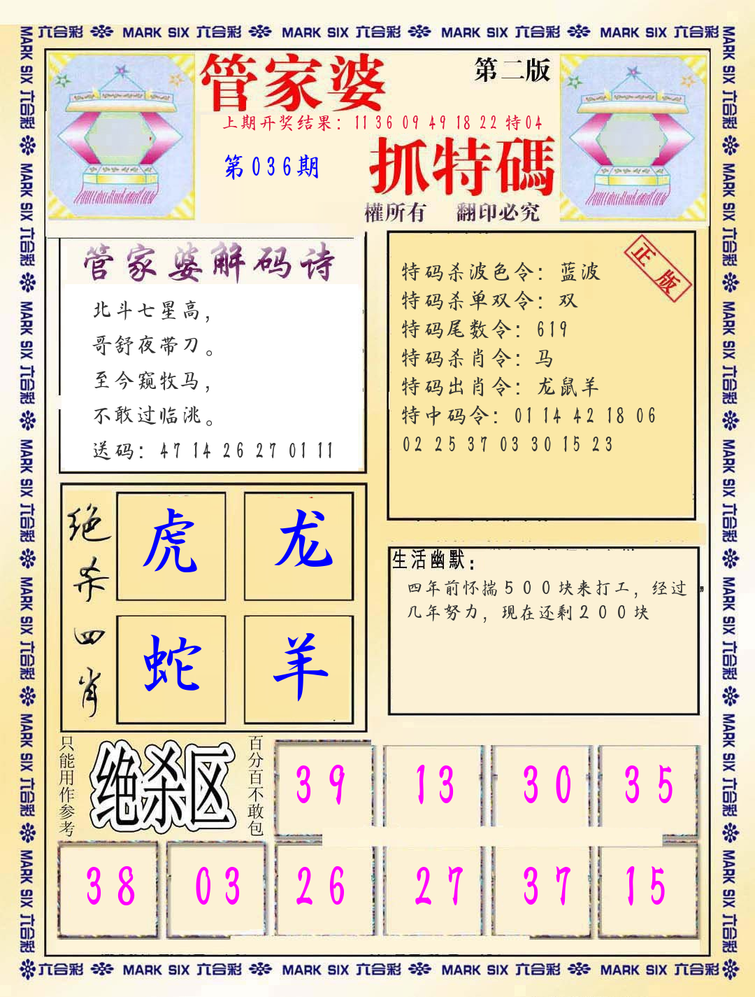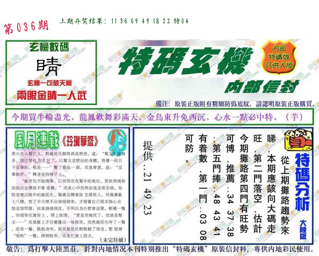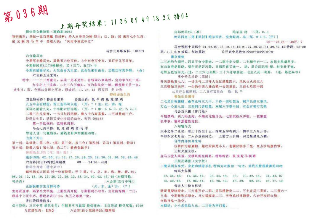 第036期:四肖中特开(???????)中 |