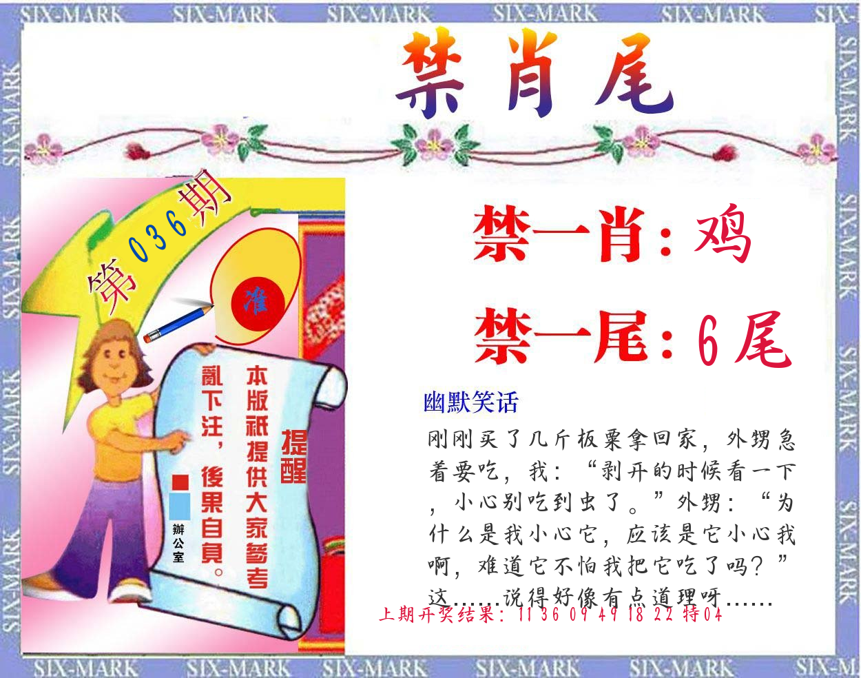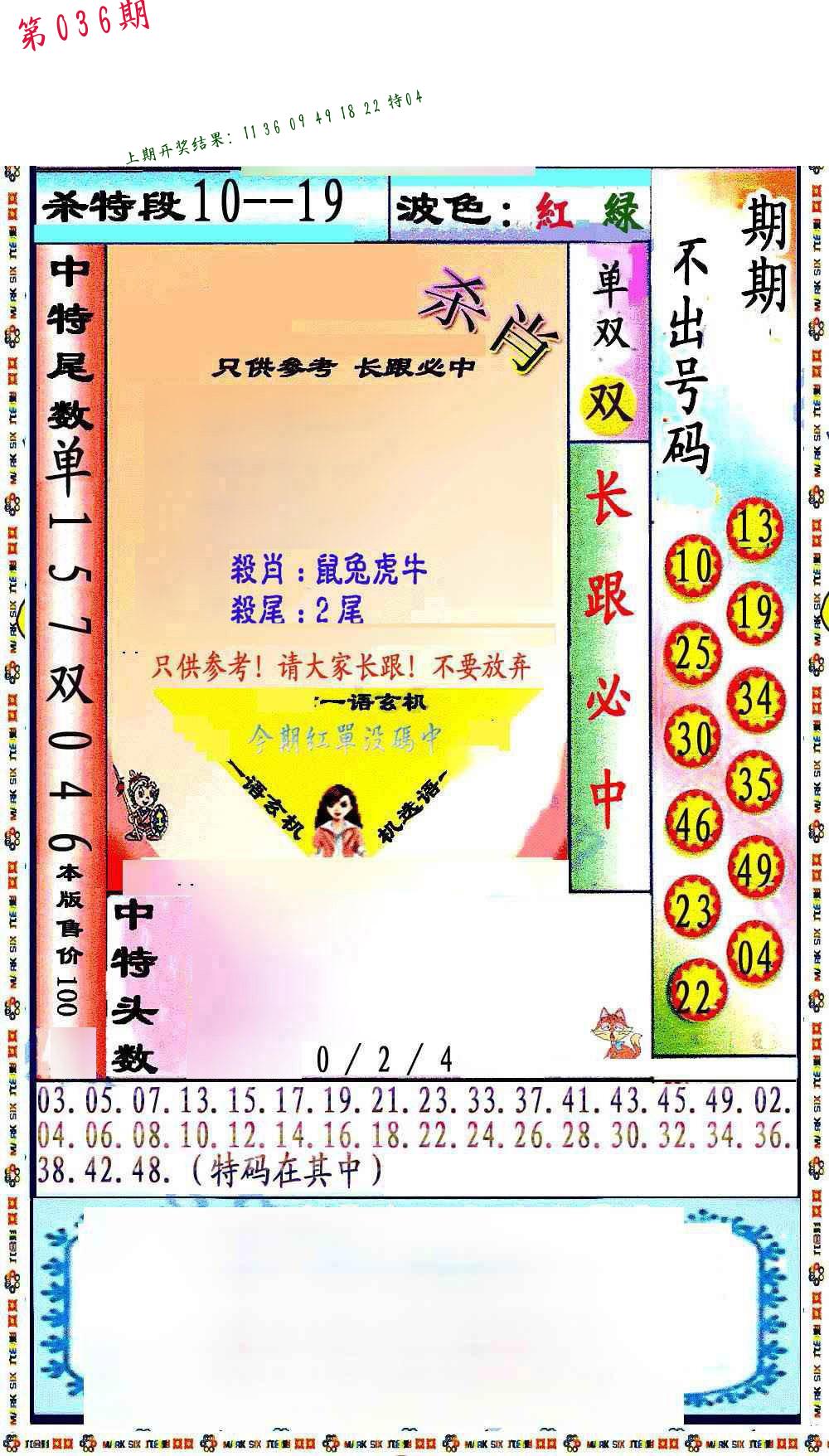 036期绝杀1.肖1.尾 【猪肖0尾】 开 ??????? |