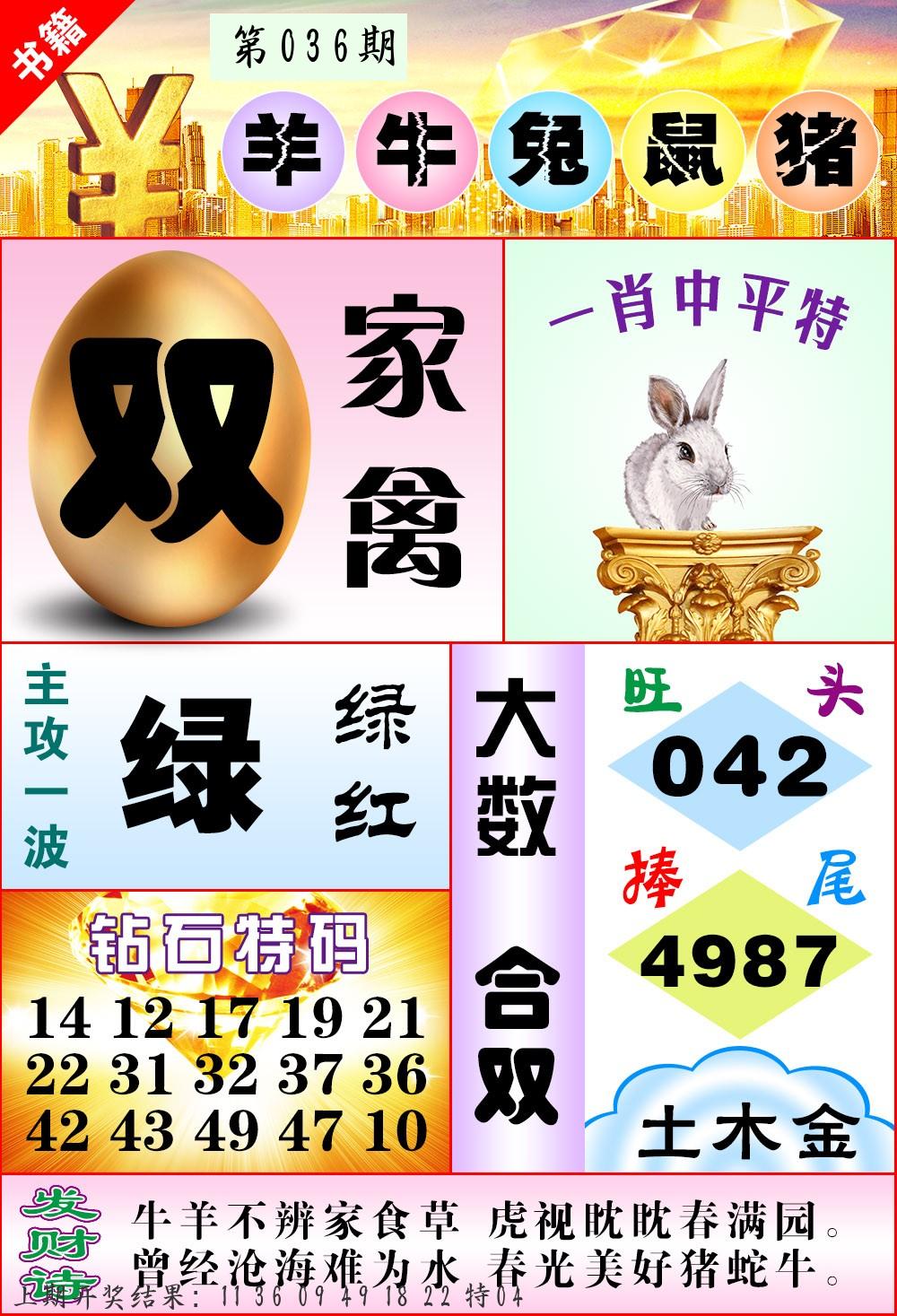033期家野(2)肖 【家禽+兔鼠】 开 18鼠对 |