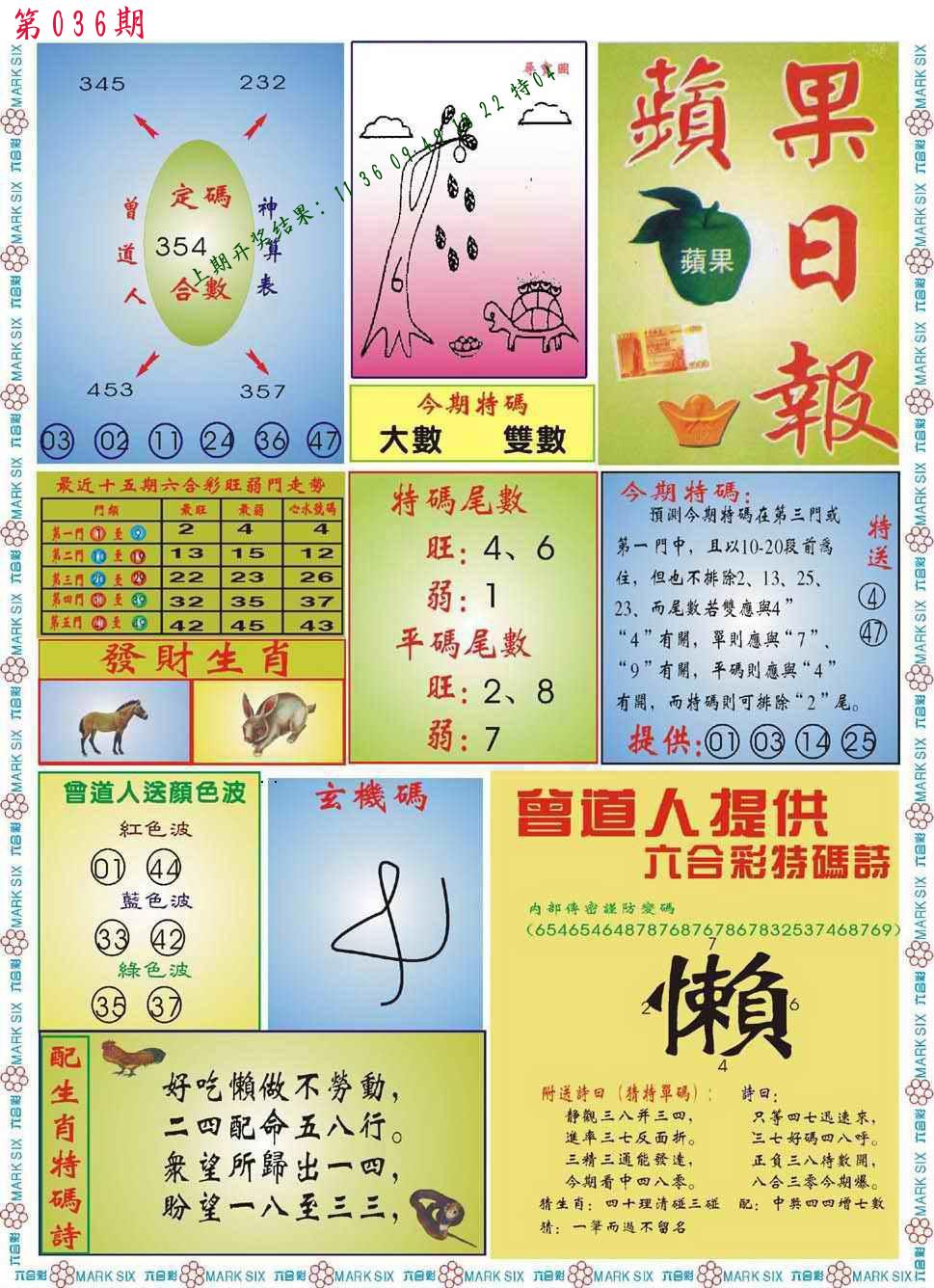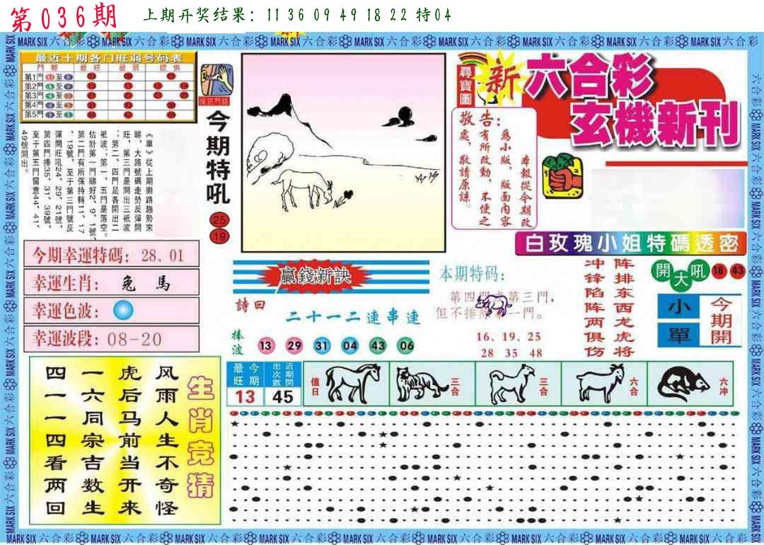 035期平特【马马马】开36马对 |