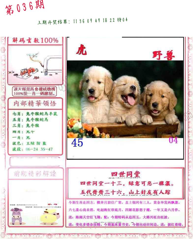 036期家野(2)肖 【野兽+猪狗】 开 ??????? |